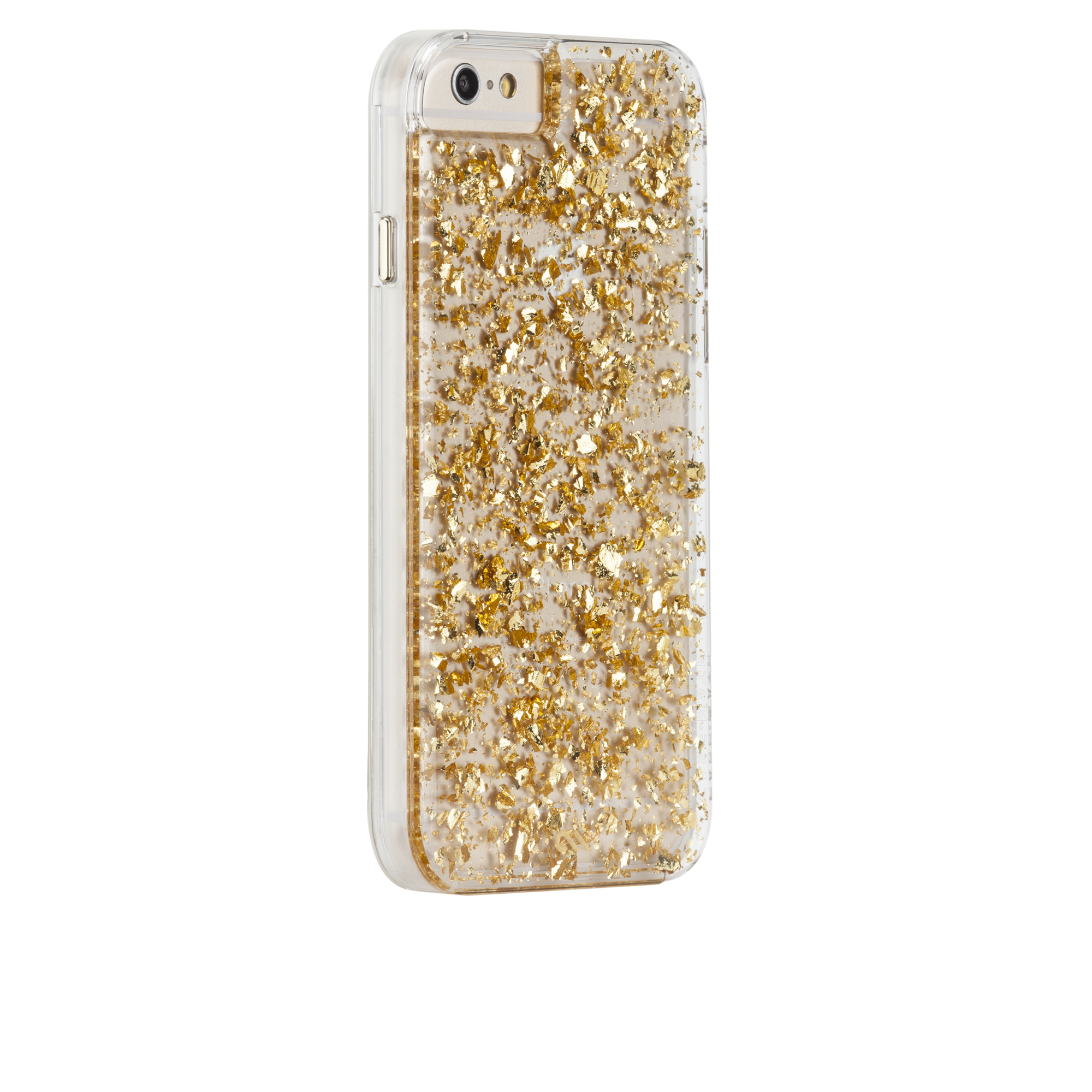 “Treasure the luster and dazzling display of 24 karat gold. Inspired by the retro soul of the chic lucite handbags of the 1950s and the 1960s, each iPhone 6 Karat case showcases genuine gold leaf highlights inlaid into acrylic to create a translucent and radiant finish.”