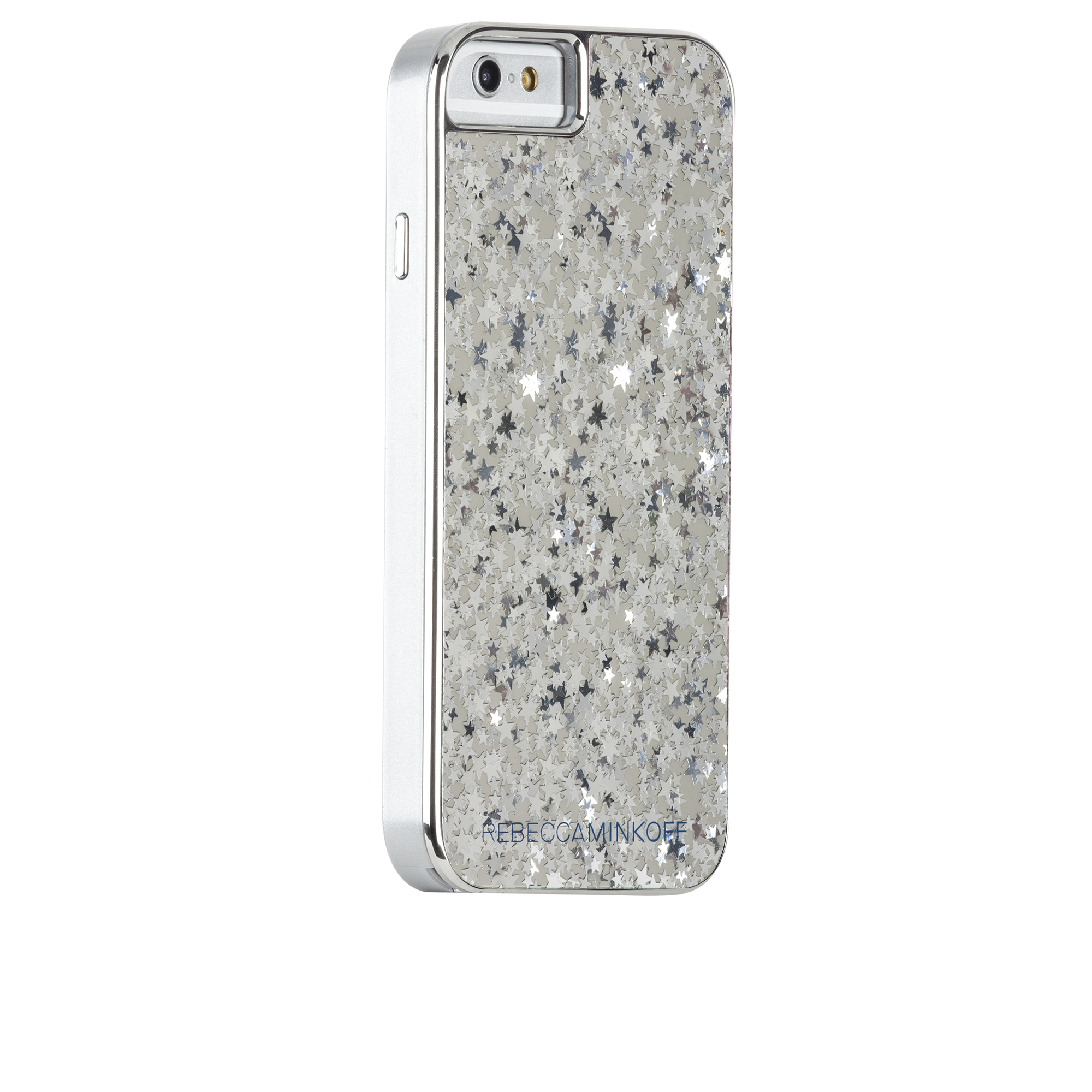 “Feeling a little starry-eyed? This playful metallic print for the iPhone 6 creates a three dimensional glitter effect that’s sure to make a statement. Each case in the Rebecca Minkoff print collection offers enhanced dual-layer protection, an ultra slim profile and is finished with refined metallic button accents.”