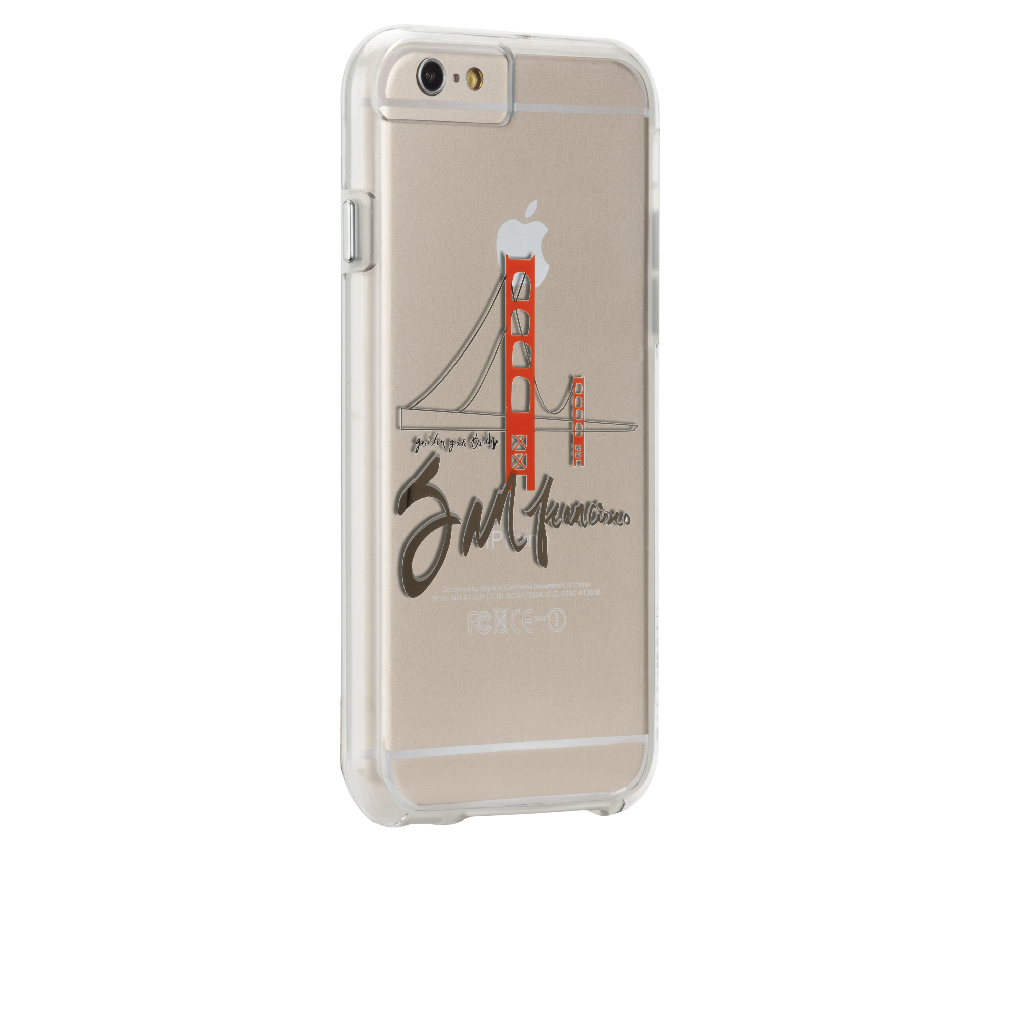 “The symbol of the City by the Bay shines through in this limited edition metallic print for iPhone 6 Plus. Designed to offer a minimalist profile with a smooth transparent finish, this dual-layered case also protects against everyday drops and dings. Color-coordinating gold buttons complete the look.”